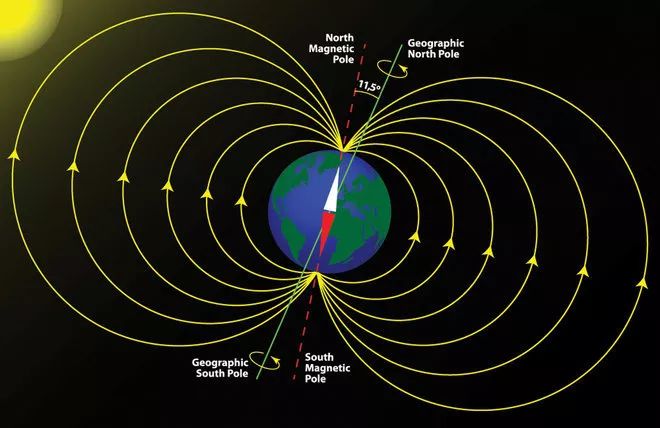 ▲ 地球磁场示意图。图片来自 Earth’s Magnetic Field image via Shutterstock
