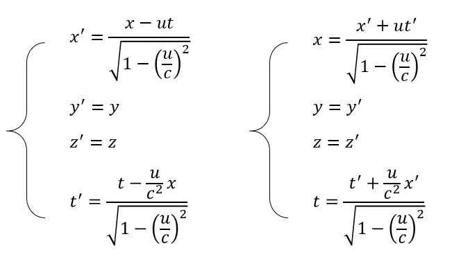 ▲ 洛伦兹变换。左侧为正变换,右侧为逆变换。