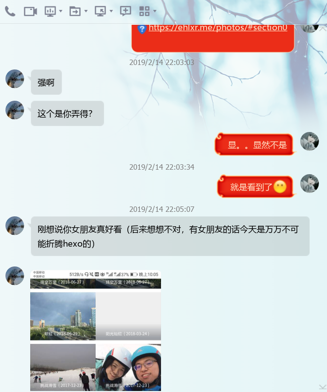 话说昨天我还在和兰铃讨论搭建博客,看到一个很好看的相册,所以发给他看。